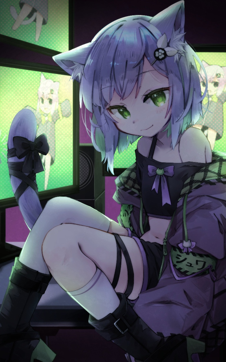 files/10808_1girl_animal_ears_black_footwear_black_shirt_black_shorts.png